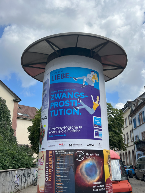 FreiJa – Aktiv gegen Menschenhandel erhält die Kreation, Druck und Ausstrahlung einer durch die Kooperationspartner organisierten kostenfreien Kampagne, die für rund einen Monat auf circa 170 Plakaten an Litfaßsäulen von Wall in Freiburg zu sehen und in einem Radiospot auf baden.fm zu hören sein wird. Mit der Reichweite von Plakat- und Radiowerbung kann die Fachberatungsstelle über die verschiedenen Facetten von Menschenhandel informieren und möglichst viele Menschen für das Thema sensibilisieren.